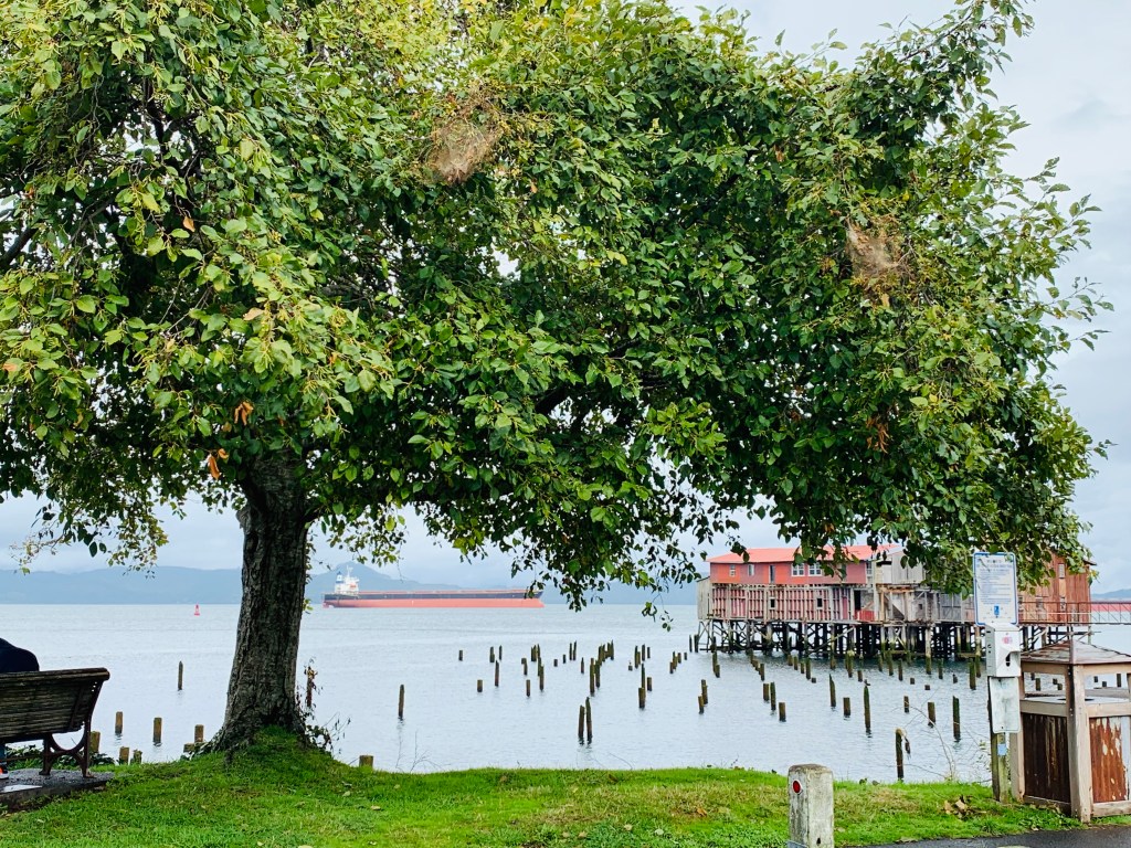 At one of the boutiques in Cannon Beach, a young sales person suggested some places to visit. One of those was Fort Stevens State Park and we decided to drive there when we saw the sign for it. Here we were able to see the mighty Columbia River – this is where the river flows into the Pacific Ocean. From here in the distance we could see the Astoria-Megler bridge (a four mile bridge which takes you from Oregon into Washington).