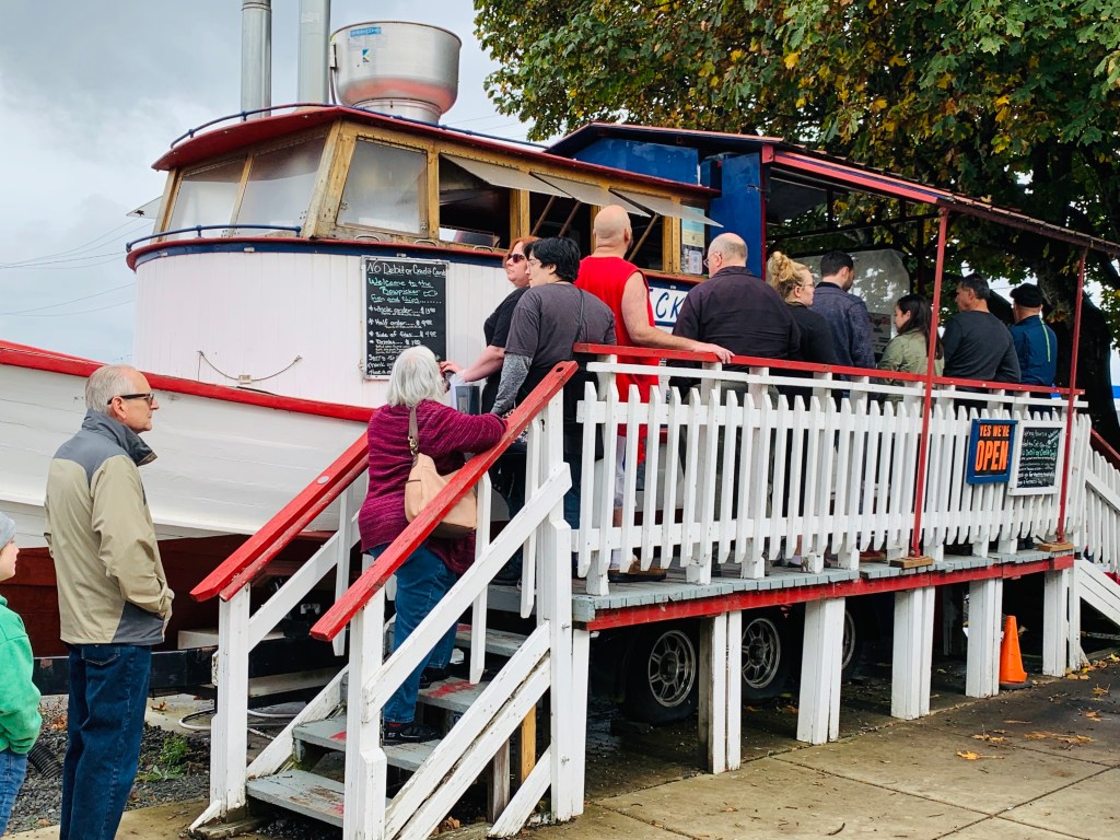 Astoria, Oregon – This town was founded in 1811 as a fur-trading post by John Jacob Astor. It was the larger of the towns we visited, and a good place for some fish and chips. Although it was a bit overcast and chilly it did not prevent us from standing in line at the BowPicker. For $5.00 you get 2 large pieces of beer battered and fried Albacore Tuna and large fries. We walked across the street, found a bench by the water and savored every bite.